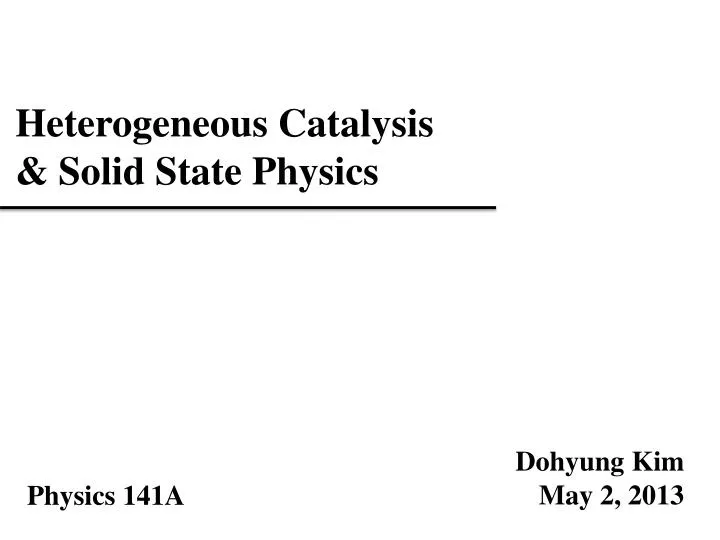 Heterogeneous Catalysis & Solid State Physics DohyungKim May 2, 2013 Physics 141A