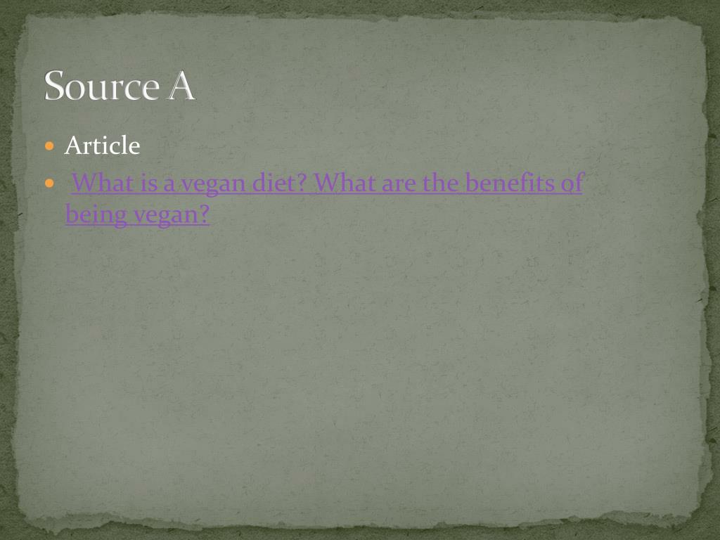 Source A • Article • What is a vegan diet? What are the benefits of being vegan?