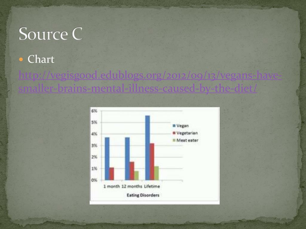 Source C • Chart http://vegisgood.edublogs.org/2012/09/13/vegans-have-smaller-brains-mental-illness-caused-by-the-diet/