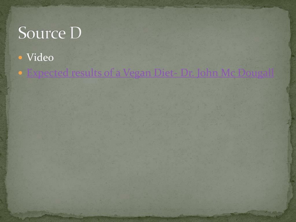 Source D • Video • Expected results of a Vegan Diet- Dr. John Mc Dougall