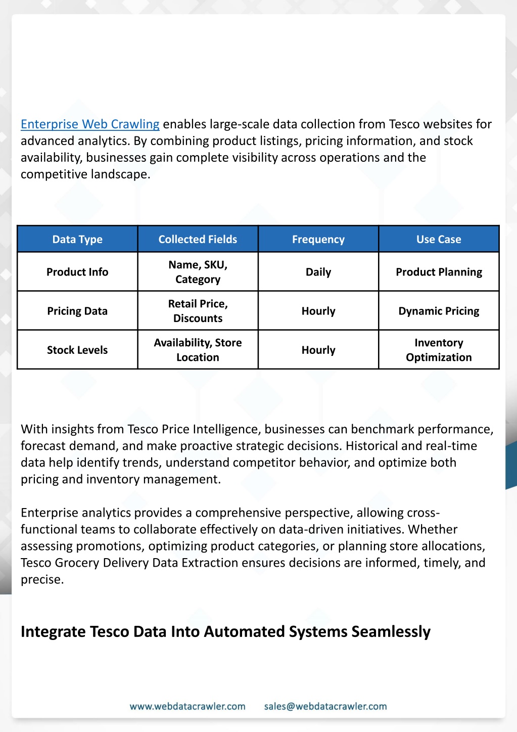 Optimize retail decisions with Tesco Grocery Data Scraping to track real-time prices, product availability, & improve your grocery delivery comparison strategy.<br><br>