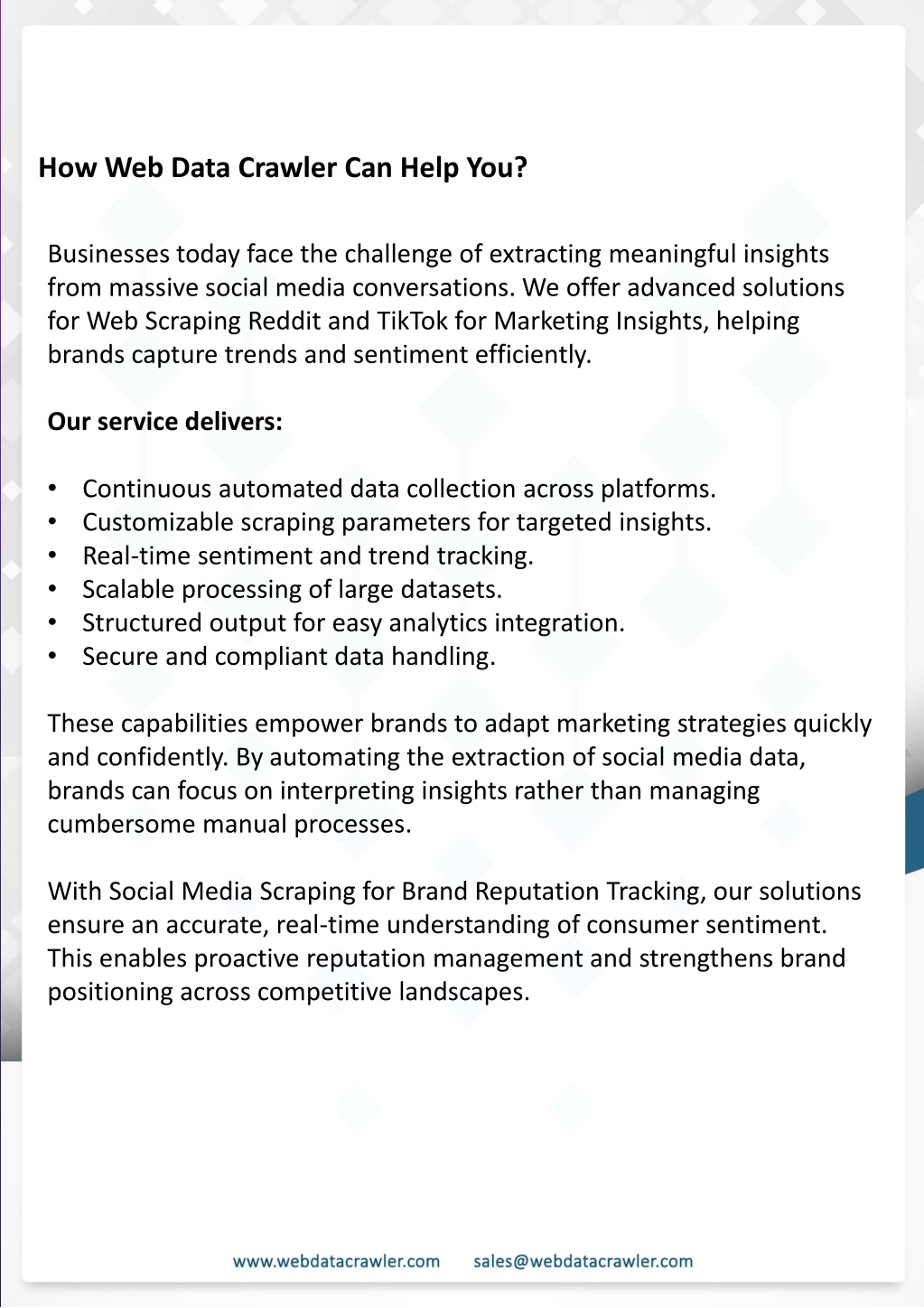 Web Scraping Reddit and TikTok for Marketing Insights enables brands to track trends, analyze sentiment, and gain actionable consumer behavior data online.<br>