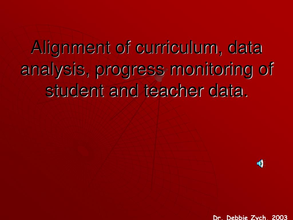 Alignment of curriculum, data analysis, progress monitoring of student and teacher data. Dr. Debbie Zych, 2003
