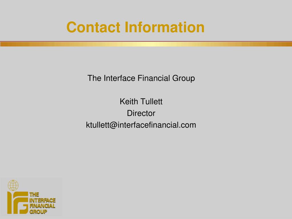 Contact Information The Interface Financial Group Keith Tullett Director ktullett@interfacefinancial.com