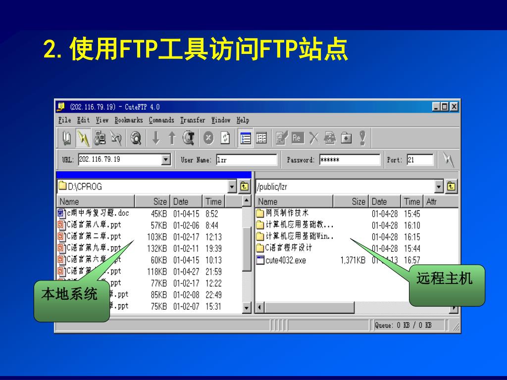 远程主机 本地系统 2.使用FTP工具访问FTP站点