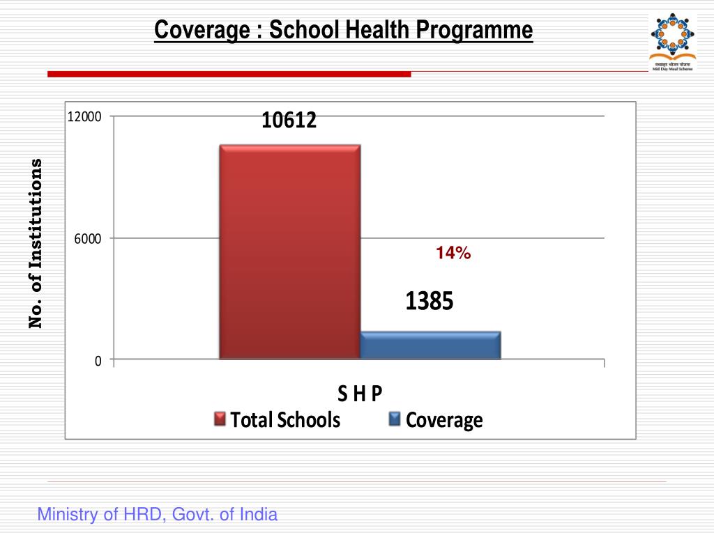 Coverage : School Health Programme No. of Institutions 14% Ministry of HRD, Govt. of India