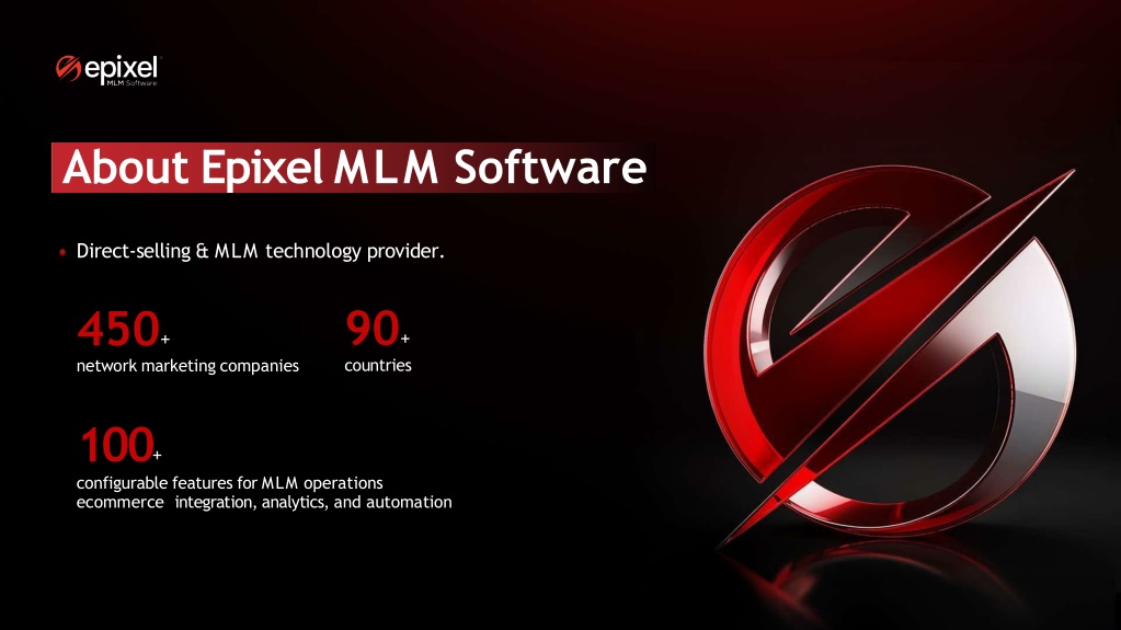 About Epixel MLM Software Direct-selling & MLM technology provider. 90+ countries 450+ network marketing companies 100+ configurable features for MLM operations ecommerce integration, analytics, and automation
