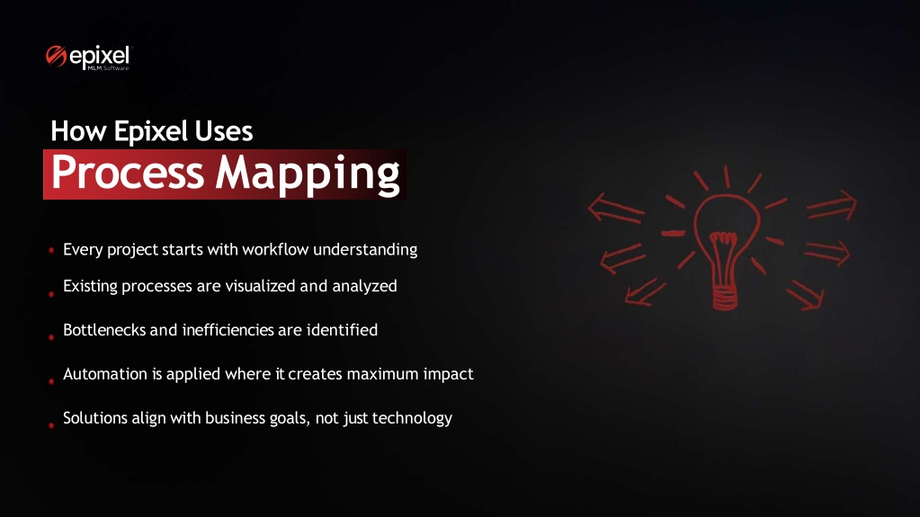 How Epixel Uses Process Mapping Every project starts with workflow understanding Existing processes are visualized and analyzed Bottlenecks and inefficiencies are identified Automation is applied where it creates maximum impact Solutions align with business goals, not just technology