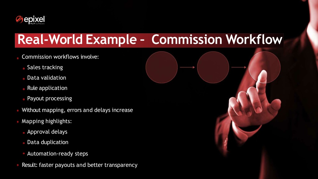 Real-World Example – Commission Workflow Commission workflows involve: Sales tracking Data validation Rule application Payout processing Without mapping, errors and delays increase Mapping highlights: Approval delays Data duplication Automation-ready steps Result: faster payouts and better transparency