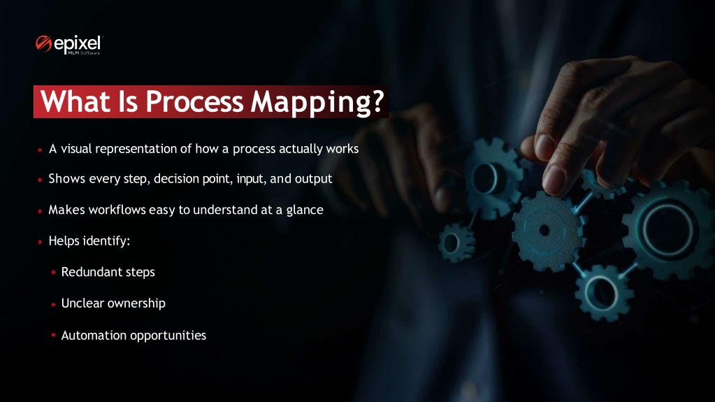 What Is Process Mapping? A visual representation of how a process actually works Shows every step, decision point, input, and output Makes workflows easy to understand at a glance Helps identify: Redundant steps Unclear ownership Automation opportunities
