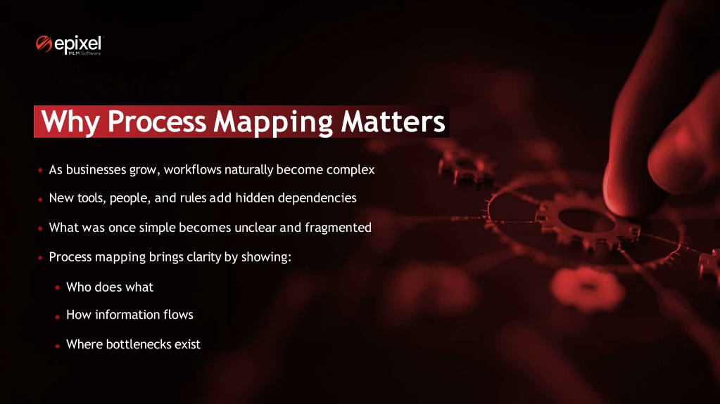 Why Process Mapping Matters As businesses grow, workflows naturally become complex New tools, people, and rules add hidden dependencies What was once simple becomes unclear and fragmented Process mapping brings clarity by showing: Who does what How information flows Where bottlenecks exist