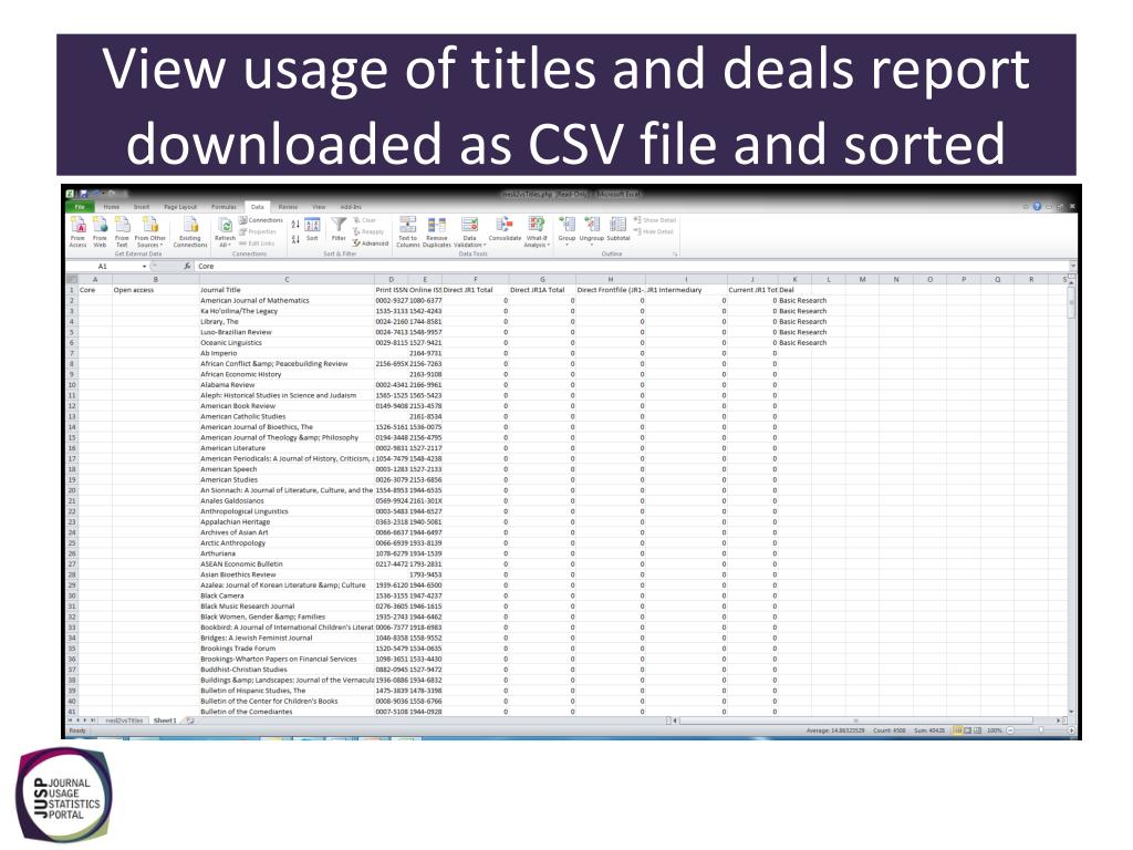 Some reasons for ‘extra’ titles in the JR1 • Publisher may include all titles in the JR1 and not just those in the deal subscribed to eg Project Muse • Odd volumes may still be available when title changes publisher • Subscribed titles held outside the deal • Trial titles • Open Access titles