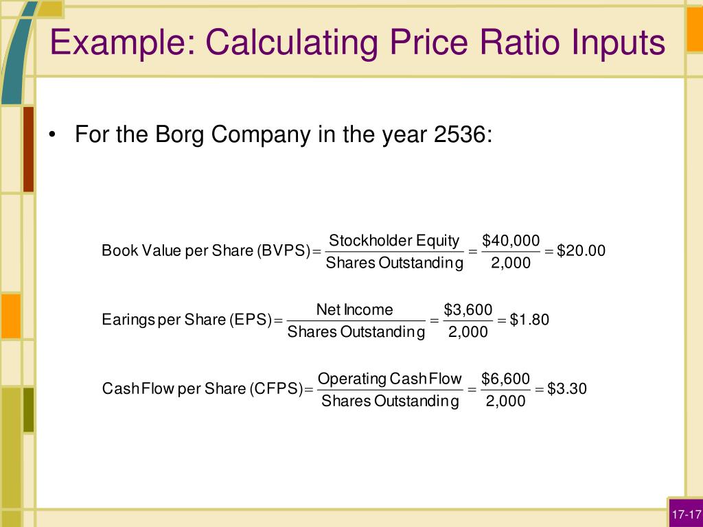Example: Calculating Price Ratios • For the Borg Company, these three ratios are: