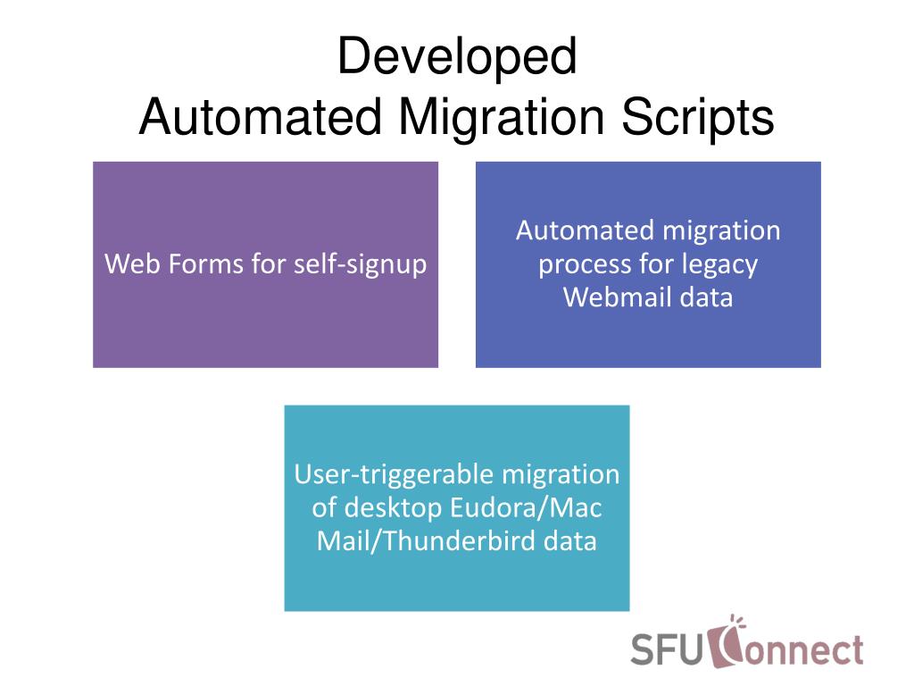 Explore SFU's successful transition to Zimbra email/calendaring system. Discover why the current system was replaced, the project's structure, technical details, automated data migration, and user perspectives. Learn from the project's outcomes and future possibilities.