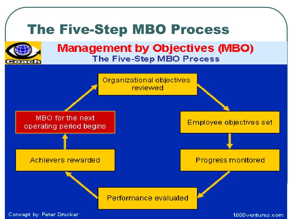 Managerial Focus • MBO managers focus on the result, not the activity. They delegate tasks by "negotiating a contract of goals" with their subordinates without dictating a detailed roadmap for implementation. Management by Objectives (MBO) is about setting yourself objectives and then breaking these down into more specific goals or key results.