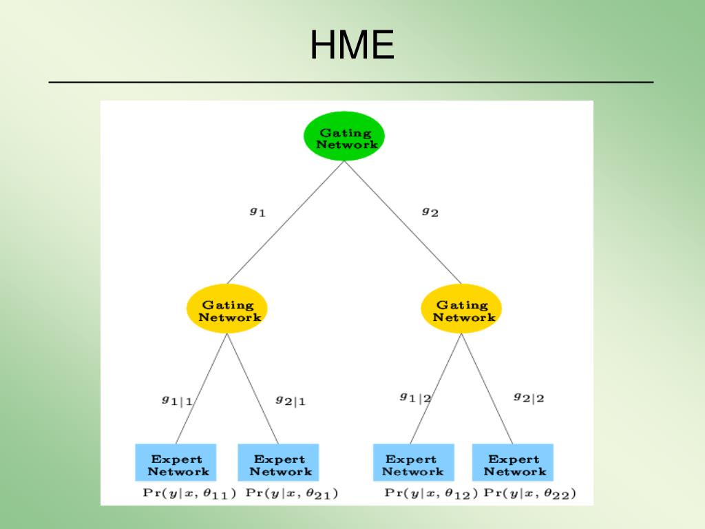HME • Pierwsza „warstwa” gating networks • Kolejne „warstwy” gating networks • W każdym ekspercie otrzymujemy model