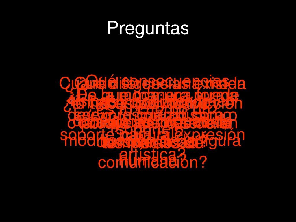Preguntas ¿Qué consecuencias físicas y sociales traen consigo las formas de modificación de la figura humana? Cuando sigues una moda ¿lo haces por convicción o porque así lo señalan los medios de comunicación? ¿Qué diferencias existen entre el body paint y el tatuaje además de la temporalidad? ¿De que manera puede servir tu cuerpo como soporte para la expresión artística? ¿Es la moda una forma de expresión artística o cultural? ¿En que tipo de ocasiones lo puedes considerar así? ¿Es tu cuerpo un soporte?