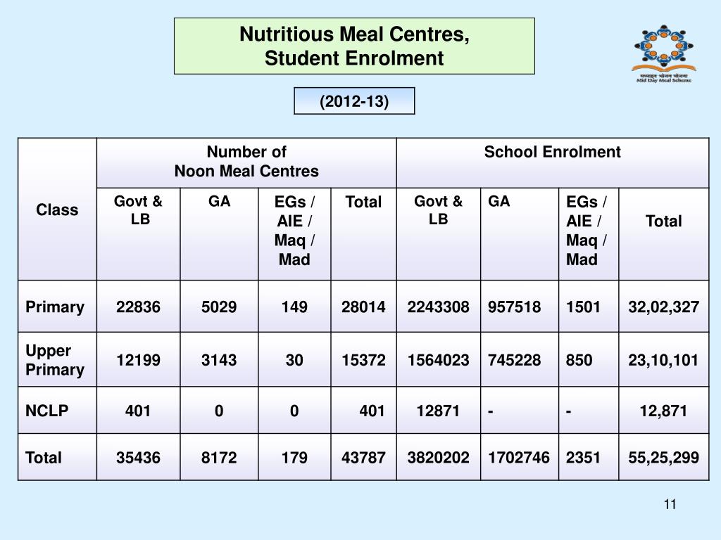 Nutritious Meal Centres, Student Enrolment