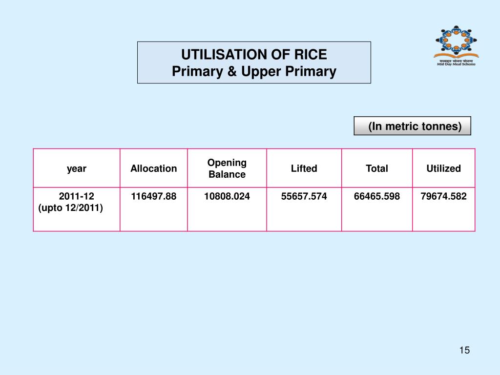 UTILISATION OF RICE Primary & Upper Primary