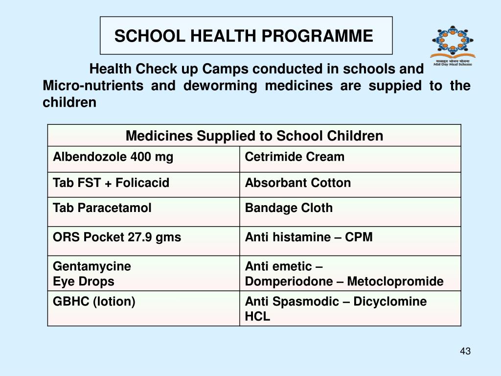 SCHOOL HEALTH PROGRAMME Health Check up Camps conducted in schools and Micro-nutrients and deworming medicines are suppied to the children
