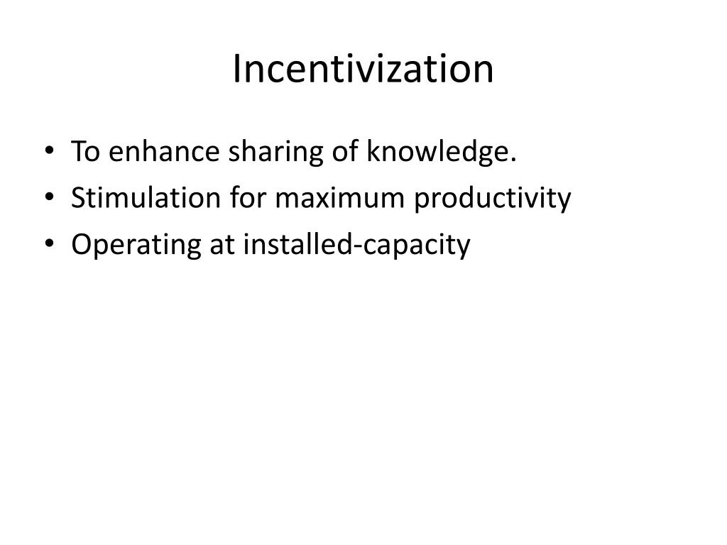 Incentivization • To enhance sharing of knowledge. • Stimulation for maximum productivity • Operating at installed-capacity