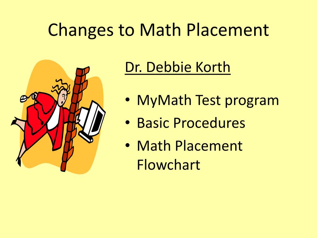 Changes to Math Placement Dr. Debbie Korth • MyMath Test program • Basic Procedures • Math Placement Flowchart