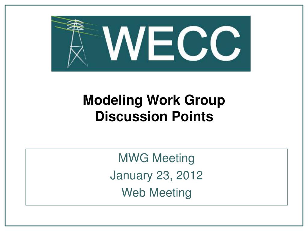 Modeling Work GroupDiscussion Points MWG Meeting January 23, 2012 Web Meeting