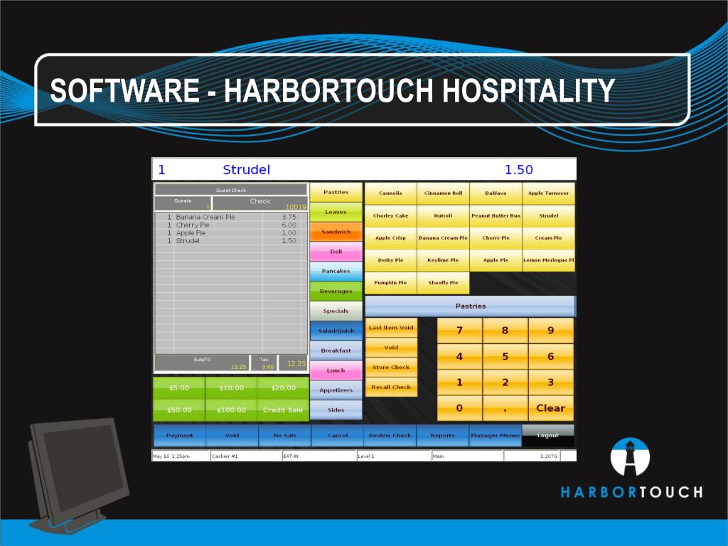 SOFTWARE - HARBORTOUCH HOSPITALITY • Improve order/check-out/service speed • Enjoy comprehensive reporting • Eliminate shrinkage • Monitor employees Perfect for quick service, fast casual, fine dining and cafeteria merchants.