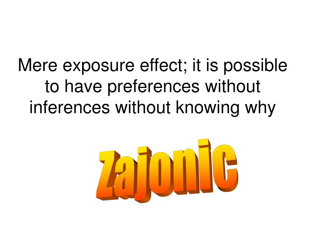 Mere exposure effect; it is possible to have preferences without inferences without knowing why Zajonic