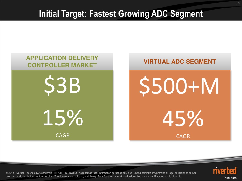 Initial Target: Fastest Growing ADC Segment APPLICATION DELIVERY CONTROLLER MARKET VIRTUAL ADC SEGMENT $3B $500+M 15% CAGR 45% CAGR