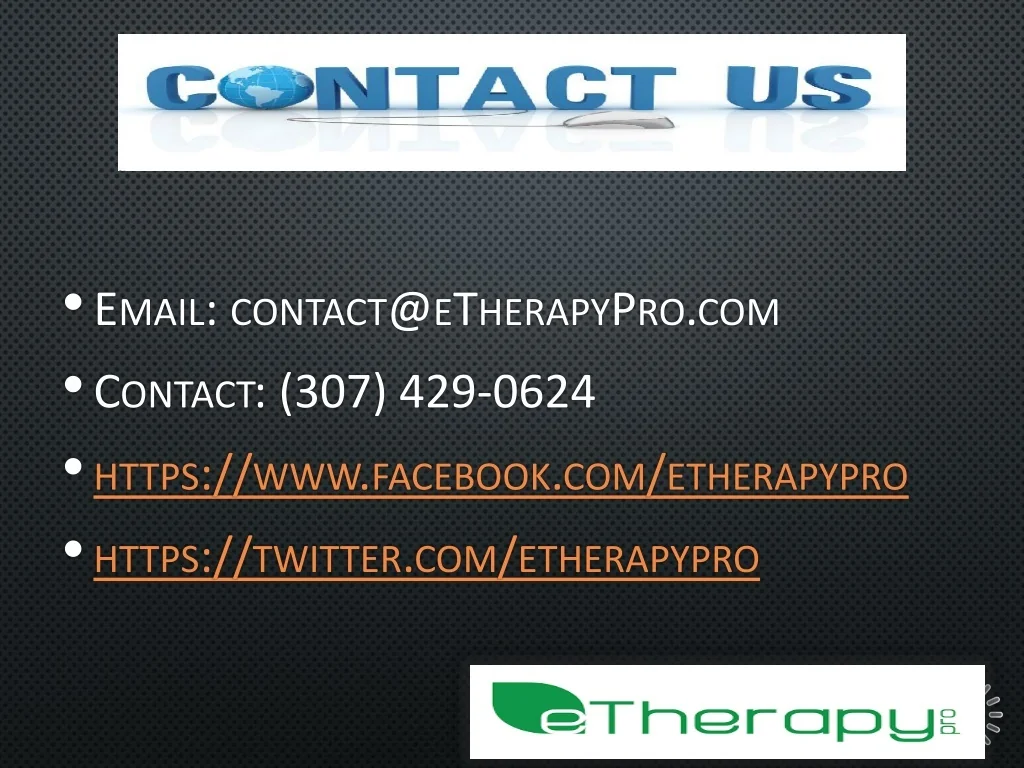Email: contact@eTherapyPro.com • Contact: (307) 429-0624 • https://www.facebook.com/etherapypro • https://twitter.com/etherapypro
