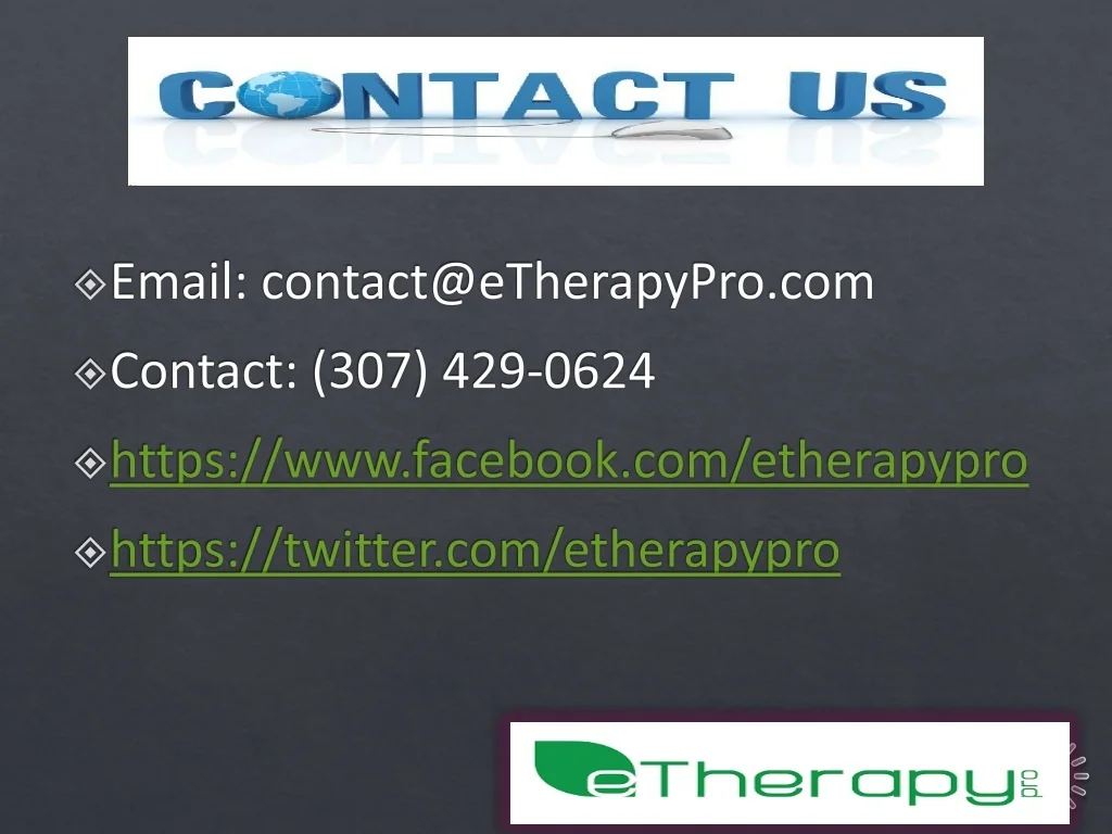 Email: contact@eTherapyPro.com • Contact: (307) 429-0624 • https://www.facebook.com/etherapypro • https://twitter.com/etherapypro