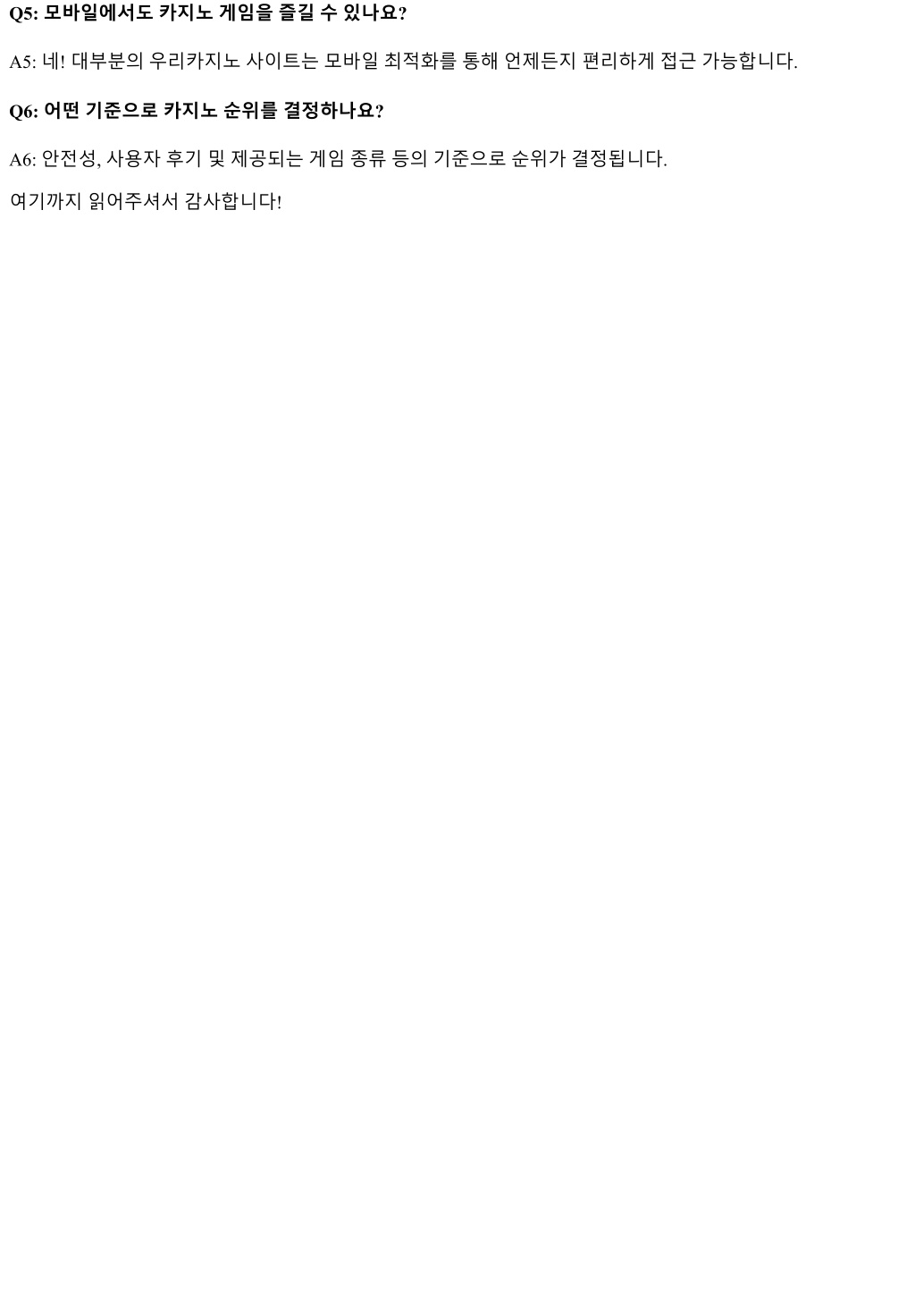 Q5: 모바일에서도카지노게임을즐길수있나요? A5: 네! 대부분의우리카지노사이트는모바일최적화를통해언제든지편리하게접근가능합니다. Q6: 어떤기준으로카지노순위를결정하나요? A6: 안전성, 사용자후기및제공되는게임종류등의기준으로순위가결정됩니다. 여기까지읽어주셔서감사합니다!