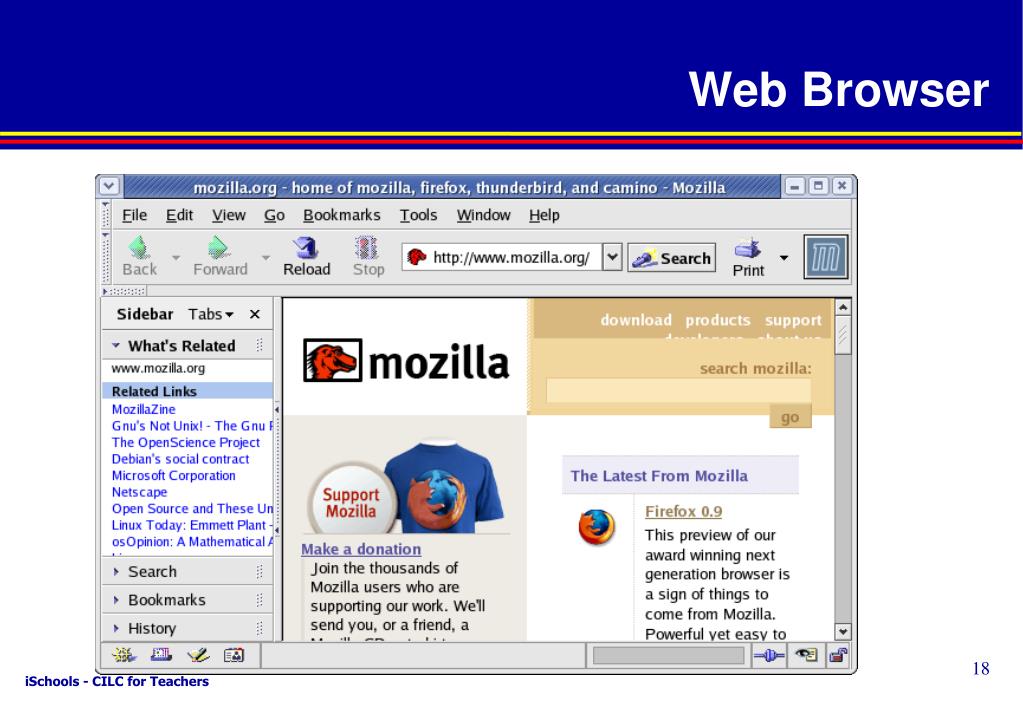 iSchools - CILC for Teachers Web Browser Back Forward Reload/Refresh Stop Address Box Search Home History Bookmark/Favorites Manager Preferences
