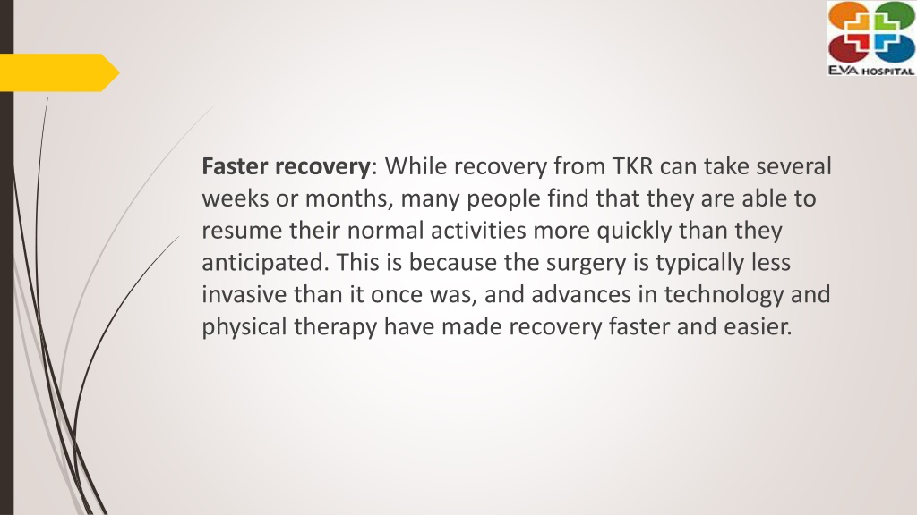 Faster recovery: While recovery from TKR can take several weeks or months, many people find that they are able to resume their normal activities more quickly than they anticipated. This is because the surgery is typically less invasive than it once was, and advances in technology and physical therapy have made recovery faster and easier.