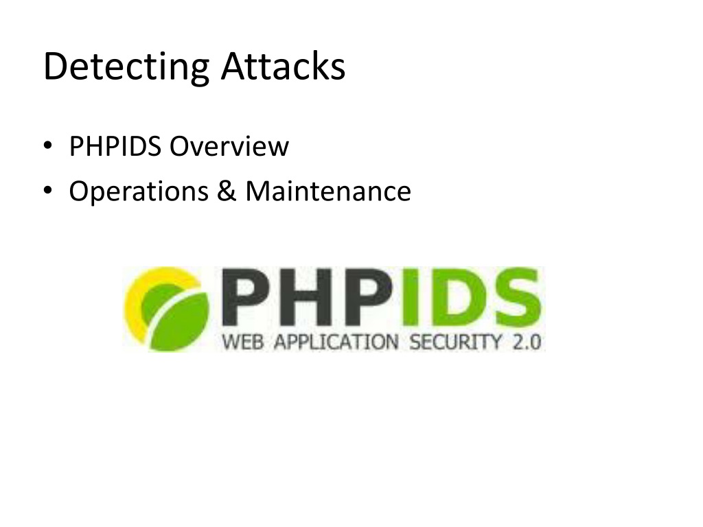 Detecting Attacks • PHPIDS Overview • Operations & Maintenance