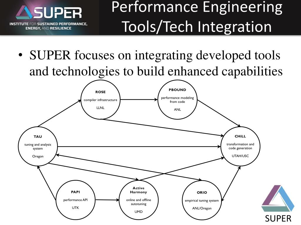 Performance Engineering Tools/Tech Integration SUPER focuses on integrating developed tools and technologies to build enhanced capabilities