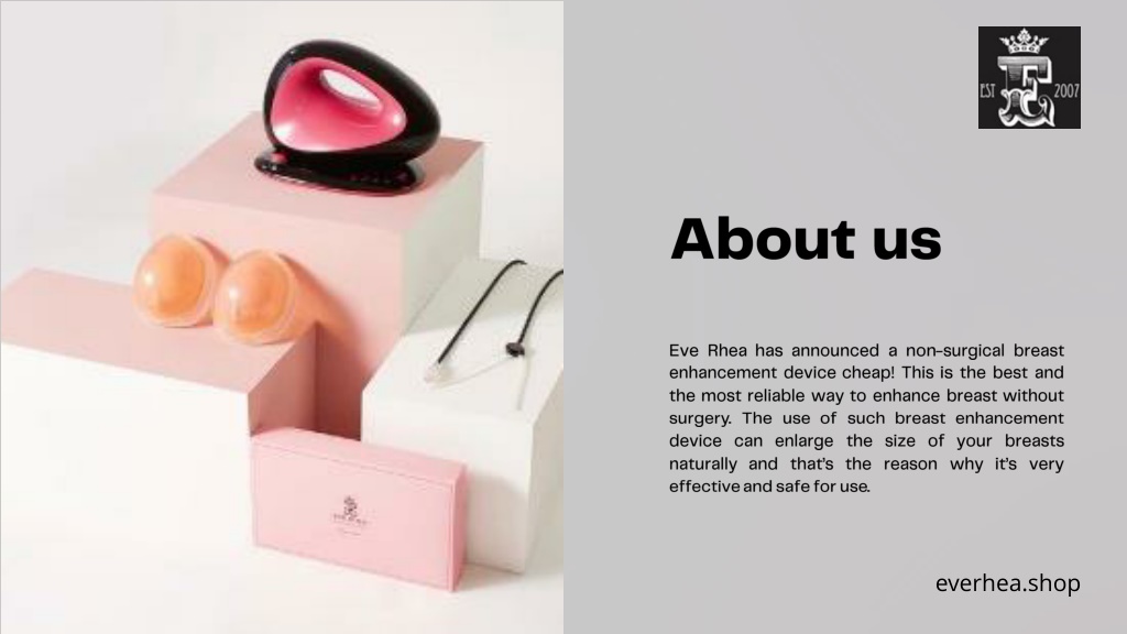 About us Eve Rhea has announced a non-surgical breast enhancement device cheap! This is the best and the most reliable way to enhance breast without surgery. The use of such breast enhancement device can enlarge the size of your breasts naturally and that’s the reason why it’s very effective and safe for use. everhea.shop