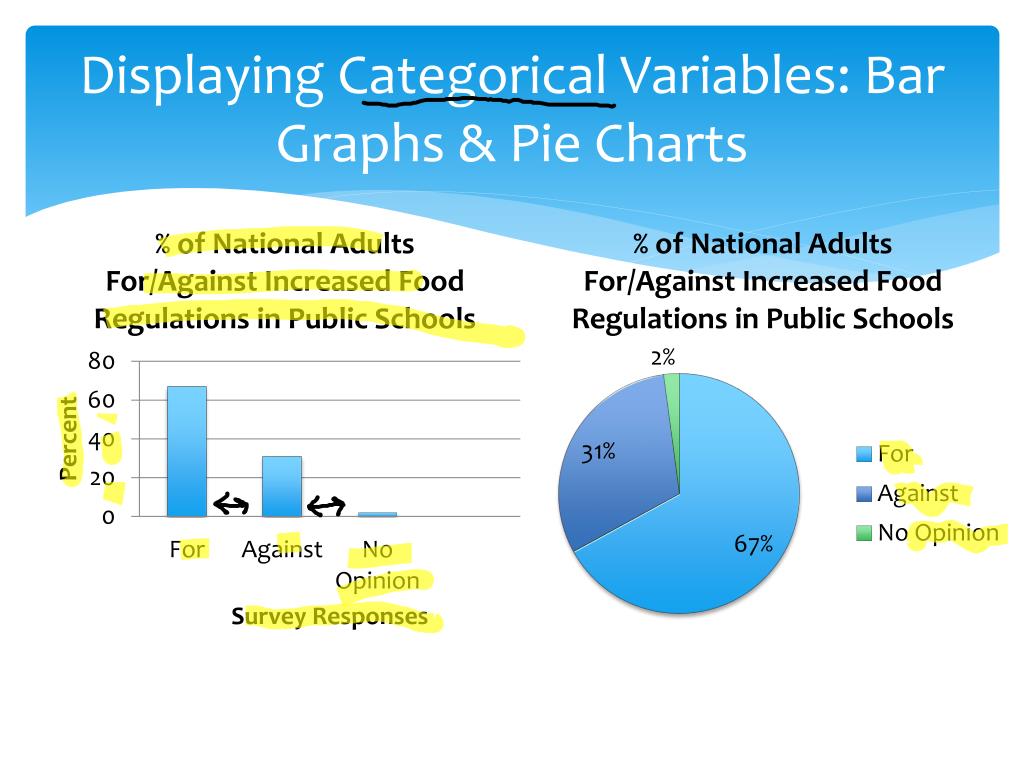 Displaying Categorical Variables: Bar Graphs & Pie Charts Would you vote for or against a new federal law that would strictly limit the kinds of food that can be served in school meals or sold elsewhere in public schools to food that meets certain standards for nutritional value?