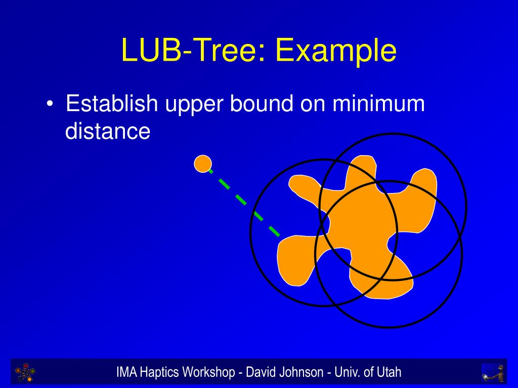 LUB-Tree: Example • Establish upper bound on minimum distance