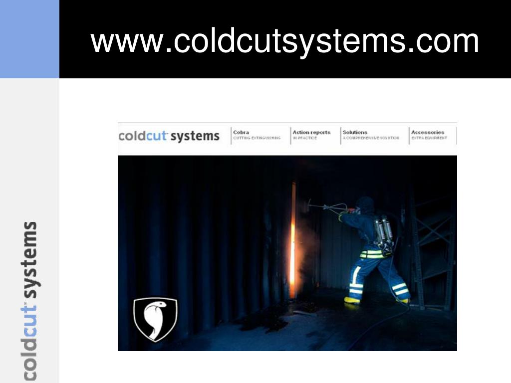THE cobra PROJECT • Some conclusions from the project: • The cobra cools fire gases in an very effective way • Usage of PPV facilitates when cobra is used as you can control fire gases before you start to ventilate • With a cobra you can also reach hidden fires which are normally very difficult to tackle • cobra improve safety fire fighters • Water damages and contaminated water were significantly reduced • cobra were used, with very good result, in a diversity of different type of fires