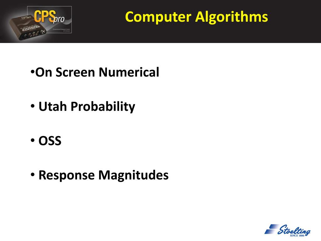 Computer Algorithms • On Screen Numerical • Utah Probability • OSS • Response Magnitudes