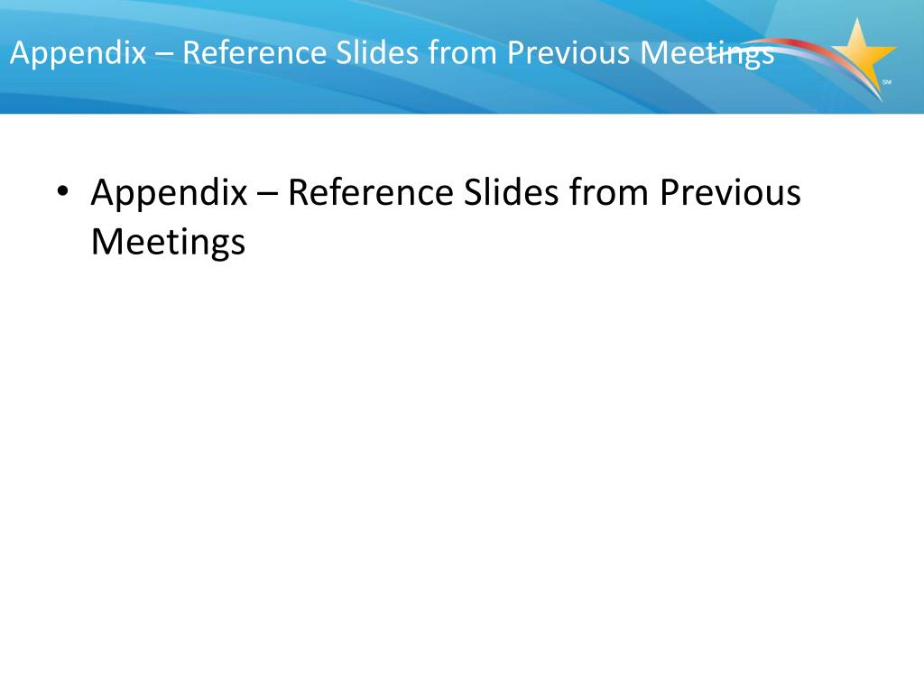 Appendix – Reference Slides from Previous Meetings Appendix – Reference Slides from Previous Meetings