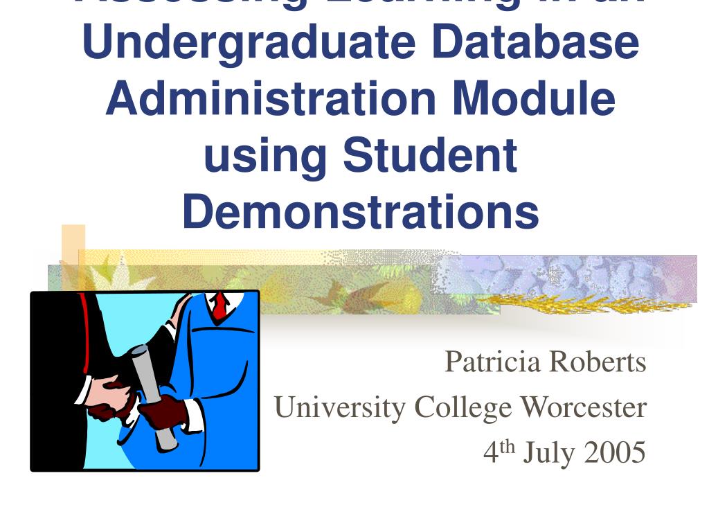 Assessing Learning in an Undergraduate Database Administration Module using Student Demonstrations Patricia Roberts University College Worcester 4th July 2005