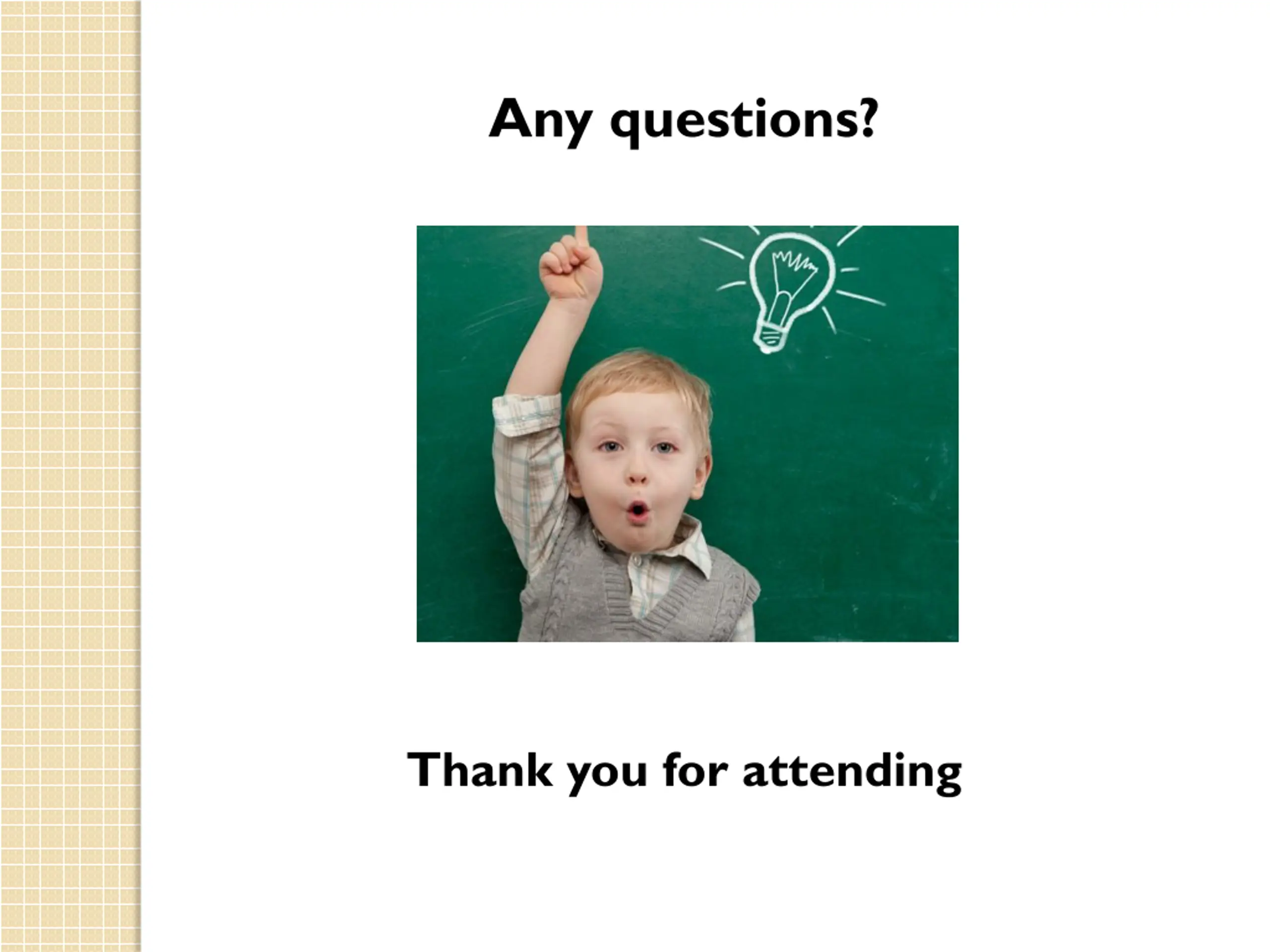 12. Any questions? Thank you for attending