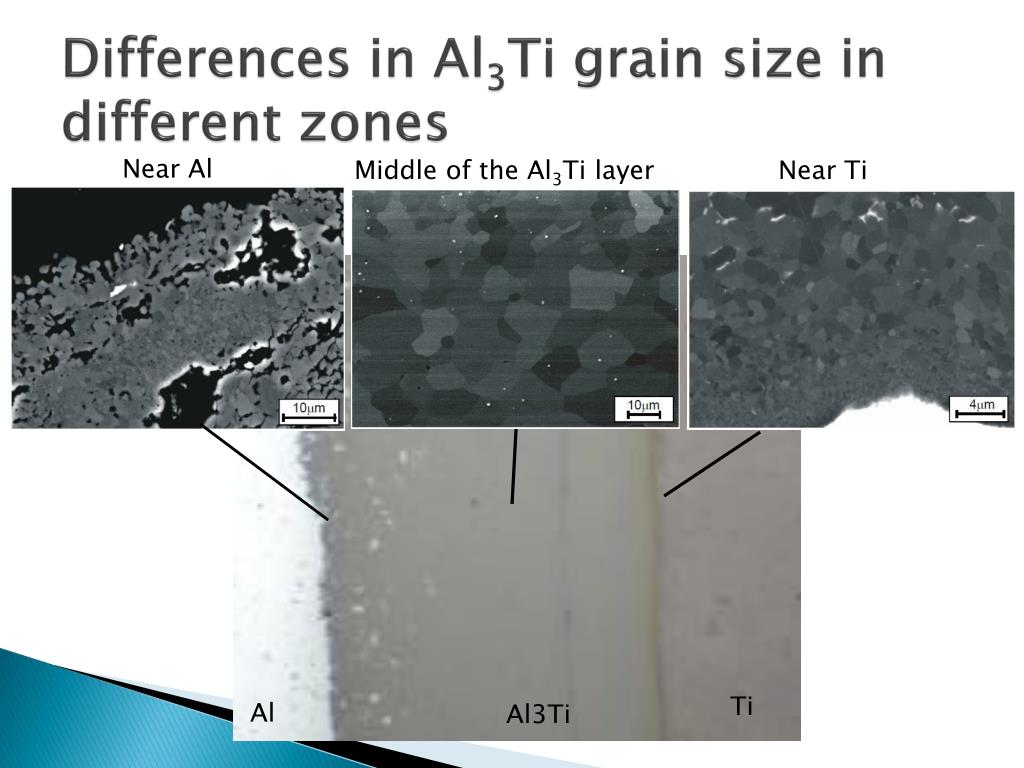 Differences in Al3Ti grain size in different zones Near Al Middle of the Al3Ti layer Near Ti Ti Al Al3Ti