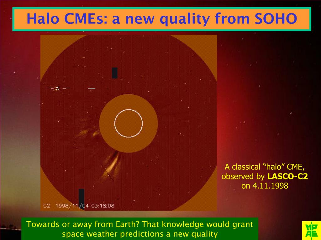 Halo CMEs: a new quality from SOHO A classical “halo” CME, observed by LASCO-C2 on 4.11.1998 Towards or away from Earth? That knowledge would grant space weather predictions a new quality