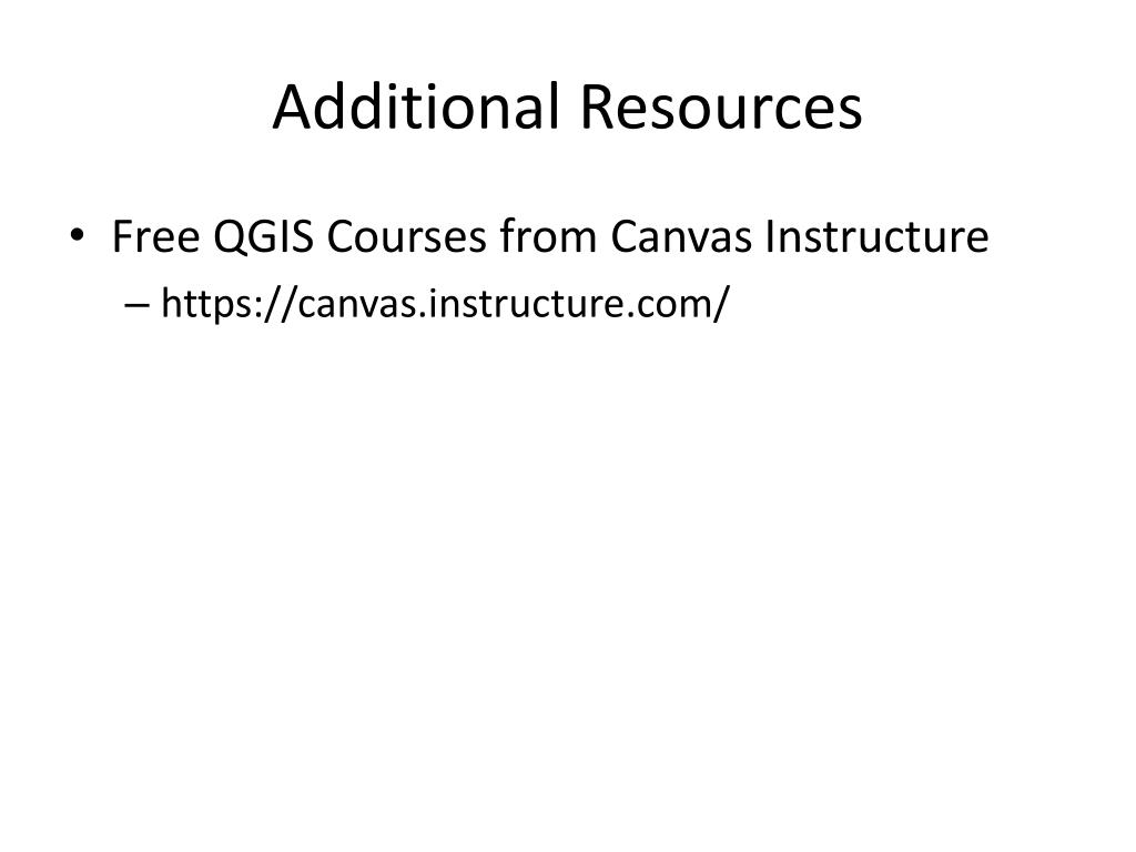 Additional Resources • Free QGIS Courses from Canvas Instructure • https://canvas.instructure.com/