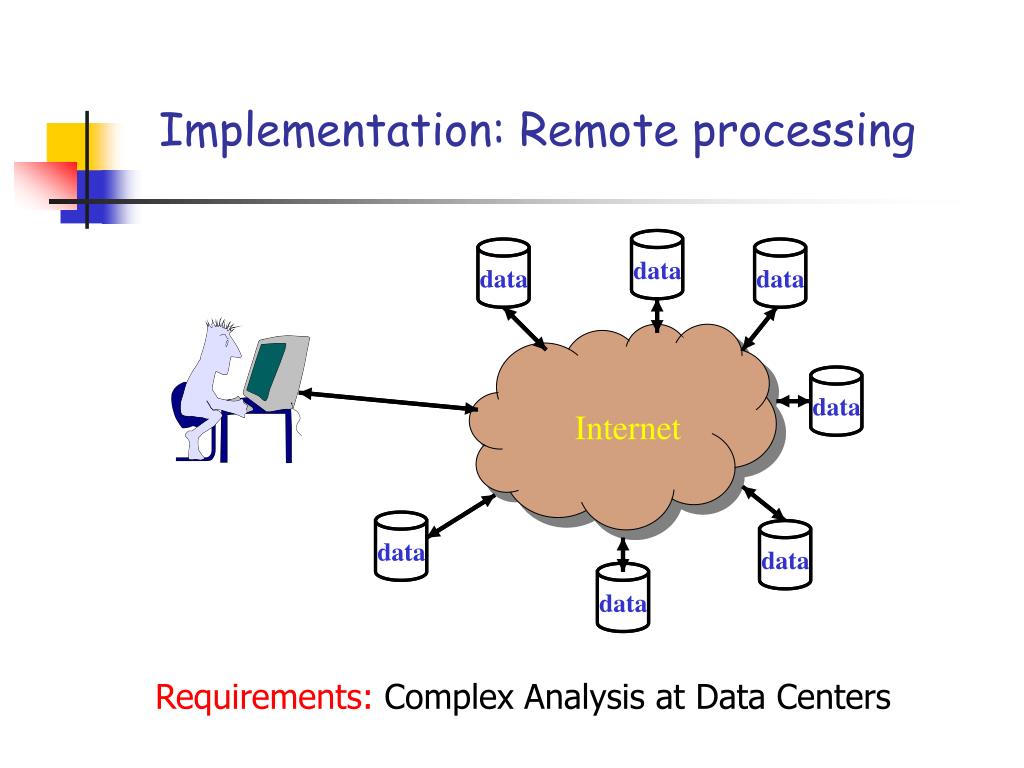 Implementation: Remote processing data data data data Internet data data data Requirements: Complex Analysis at Data Centers
