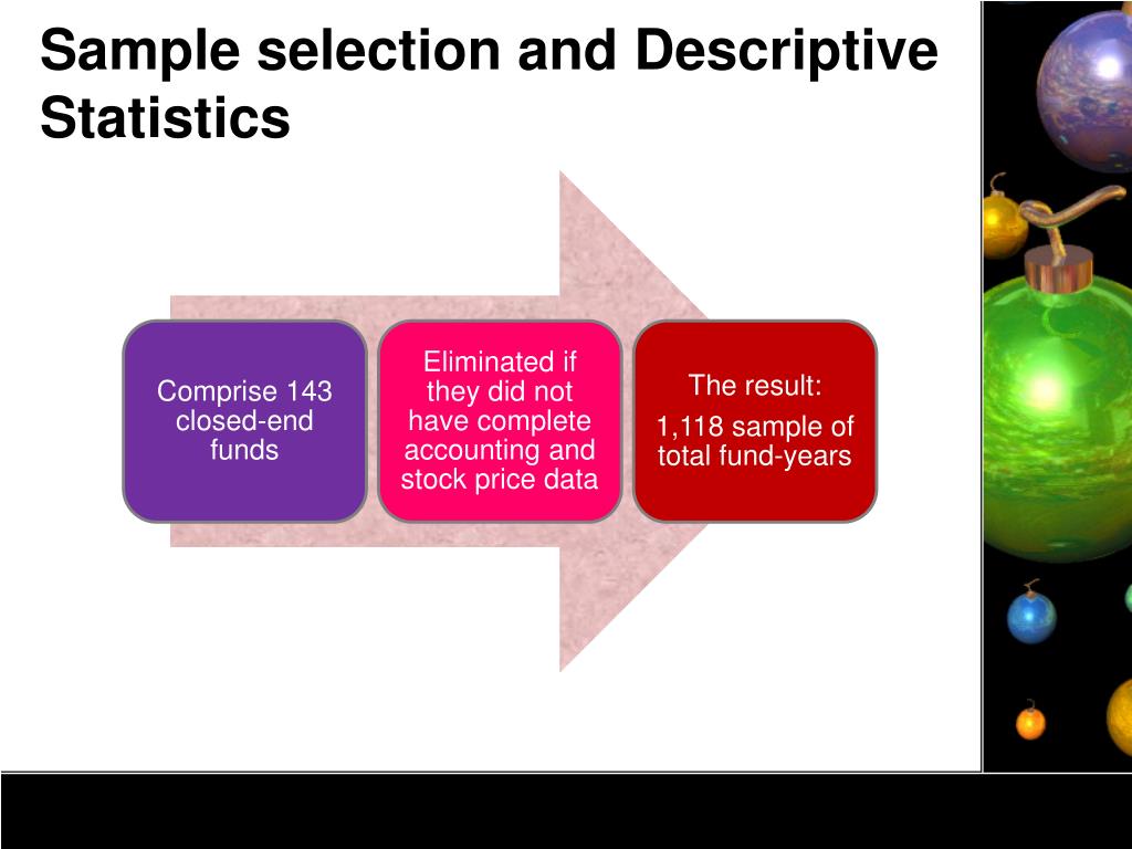 They derive from managerial performance that are not reflected in NAV (Boudreaux, 1973; Ingersoll, 1976; Chance, 1997) Discount/premium explanations Tax liability on unrealized capital appreciation does not show up in NAV (Malkiel, 1977) Liquid asset are overvalued in NAV (Malkiel, 1977) Indicate mispricing regarding individual investor sentiments cause systematic noise trading (Lee, Shleifer, Thaler, 1991) Mispricing exist in the presence of rational traders who taking full advantages of mispricing